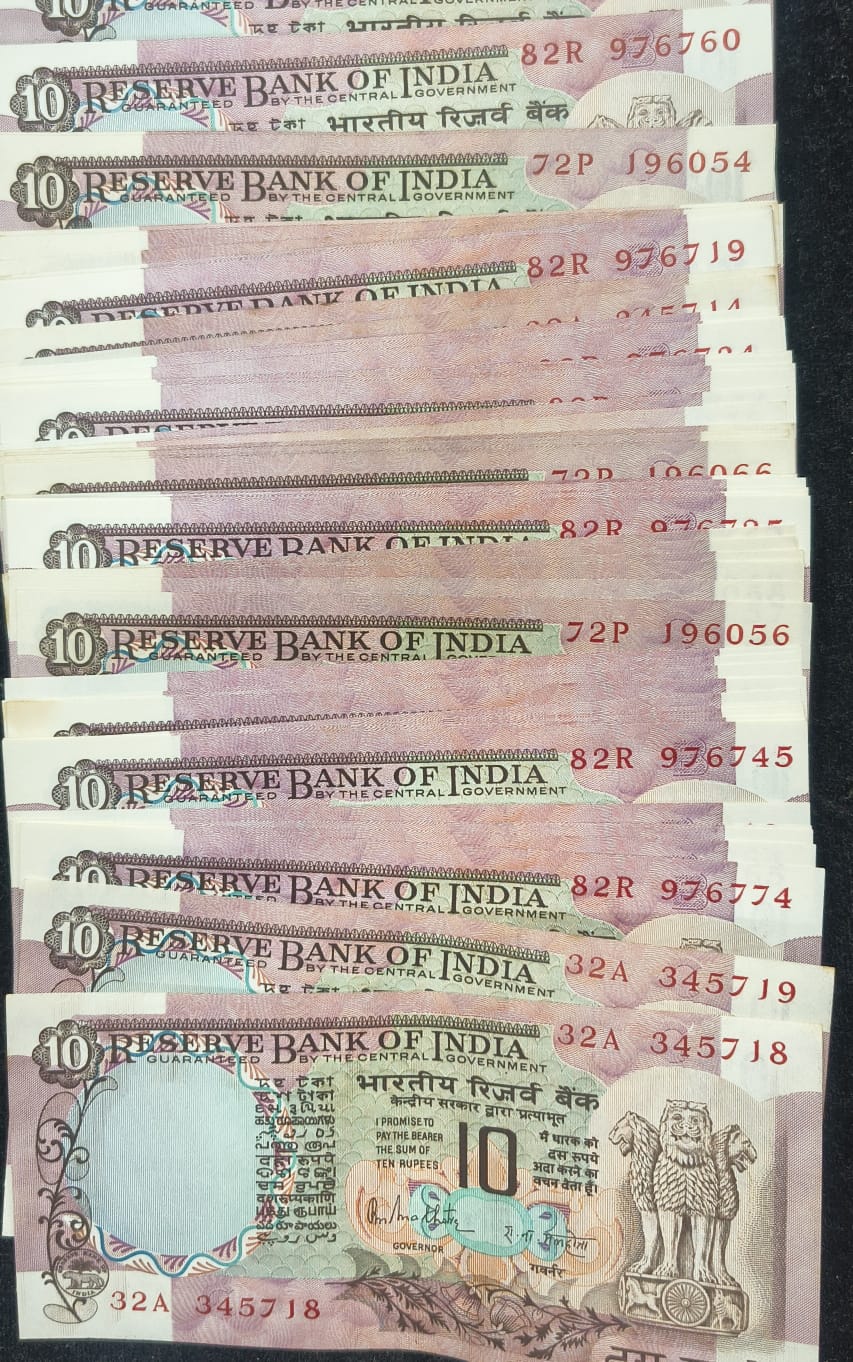 R.N MALHOTRA 10 RUPEES PEE COCK SERIES UNC (5 PCE LOTT)# SKU-46