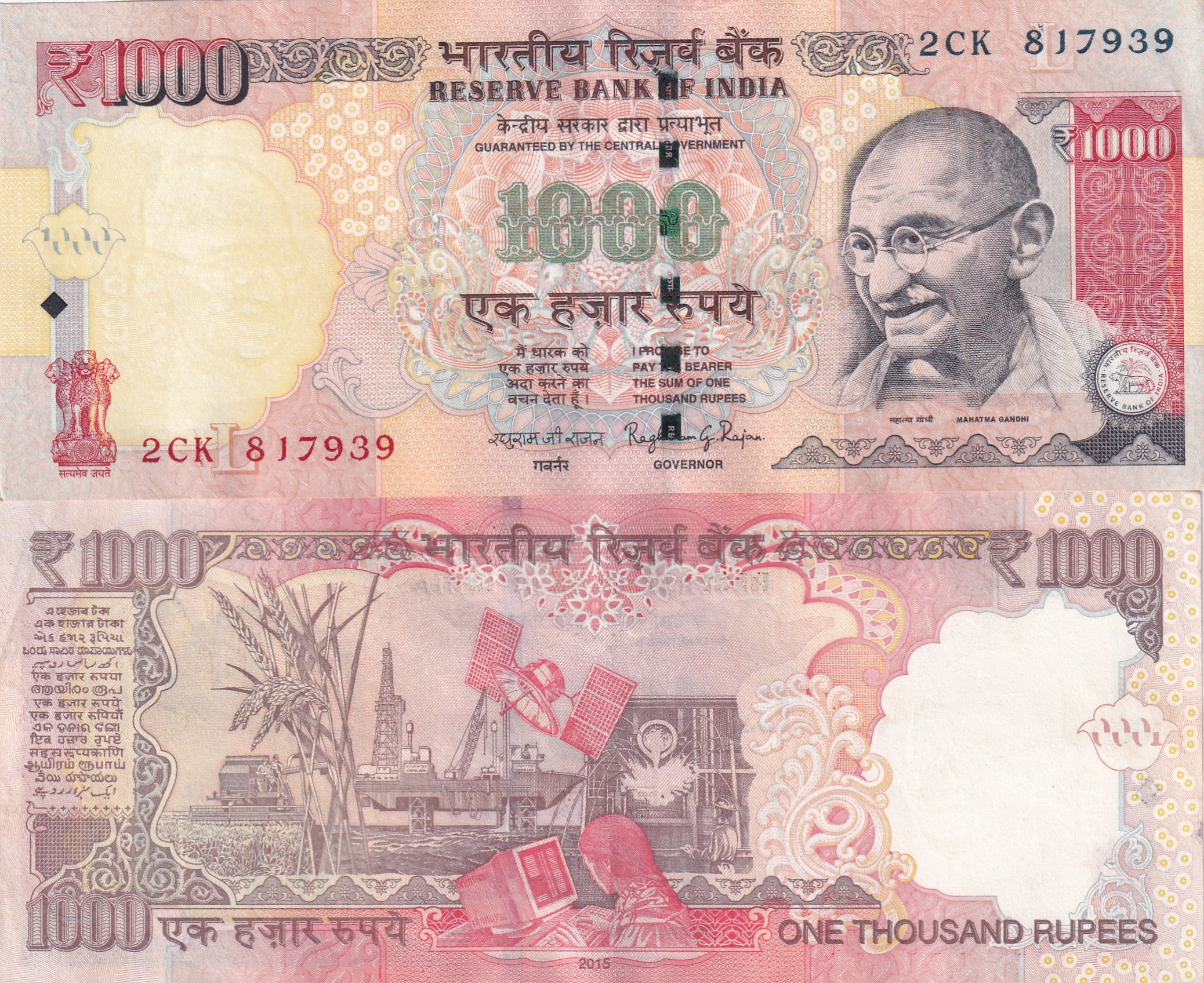 RAGHU RAM RAJAN (L INSERT 2015) 1000 Rupees Top condition Note without Pen Mark