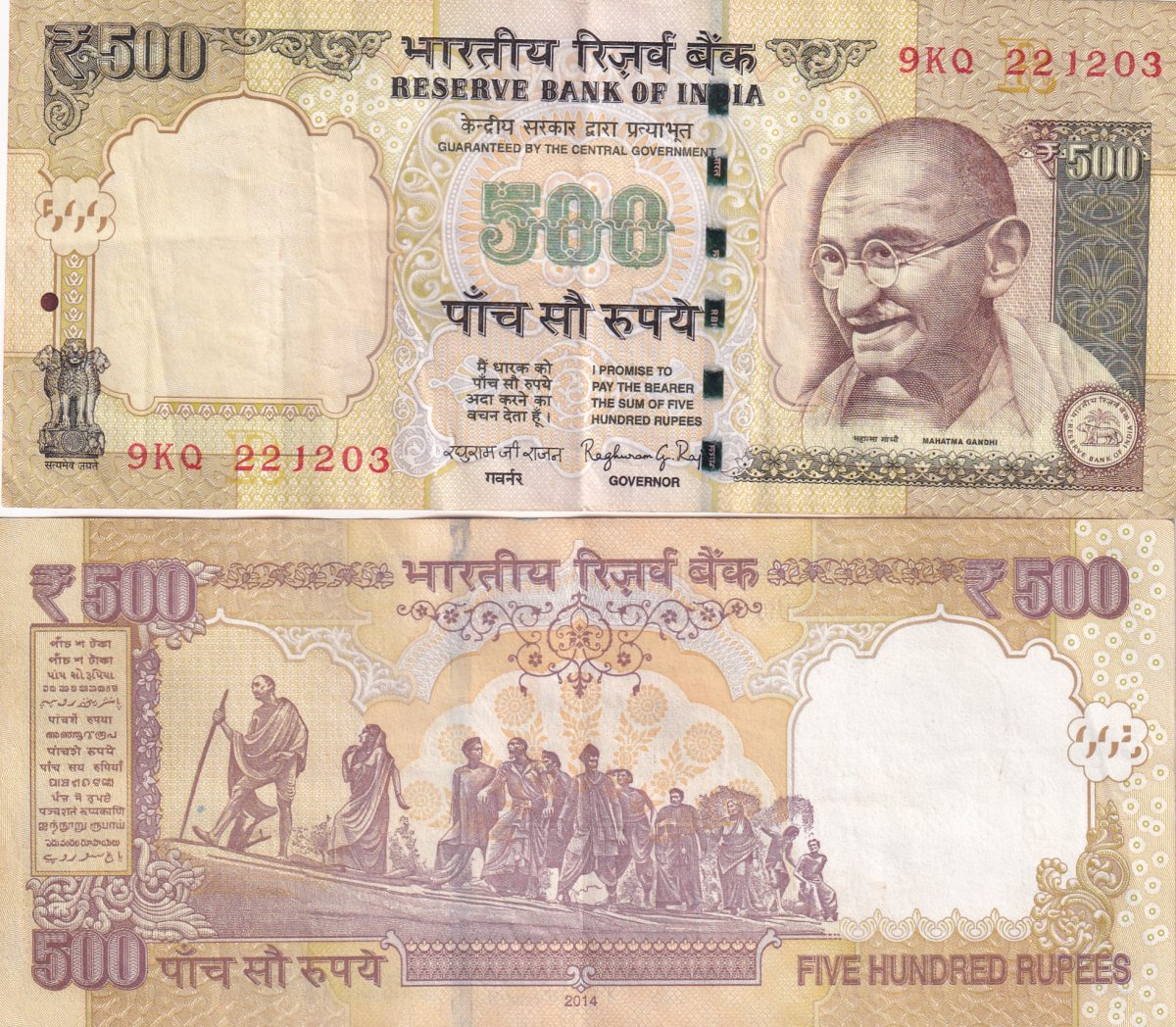 RAGHURAM RAJAN ( R Insert 2014) 500 Rupees Top condition Note without Pen Mark