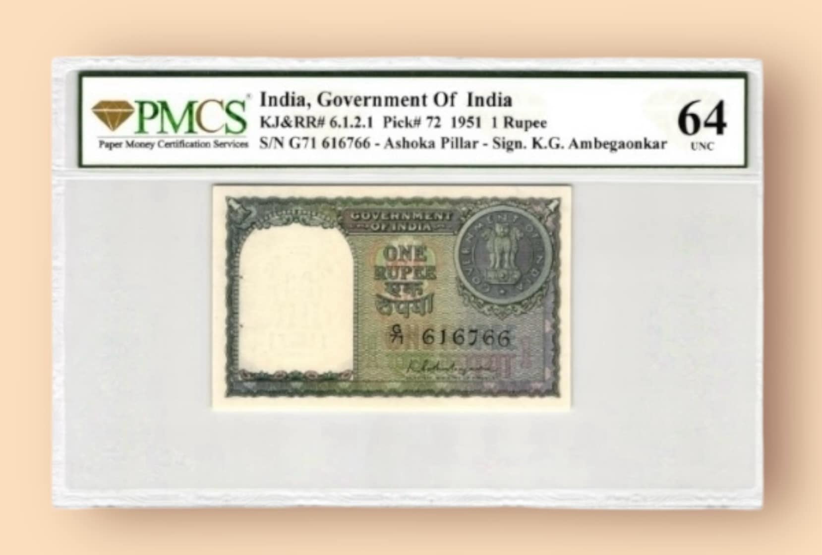 Re 1 REPUBLIC INDIA BANKNOTE GRADED 64 signed by K G Ambegaonkar UNC Very Unique and Rare
