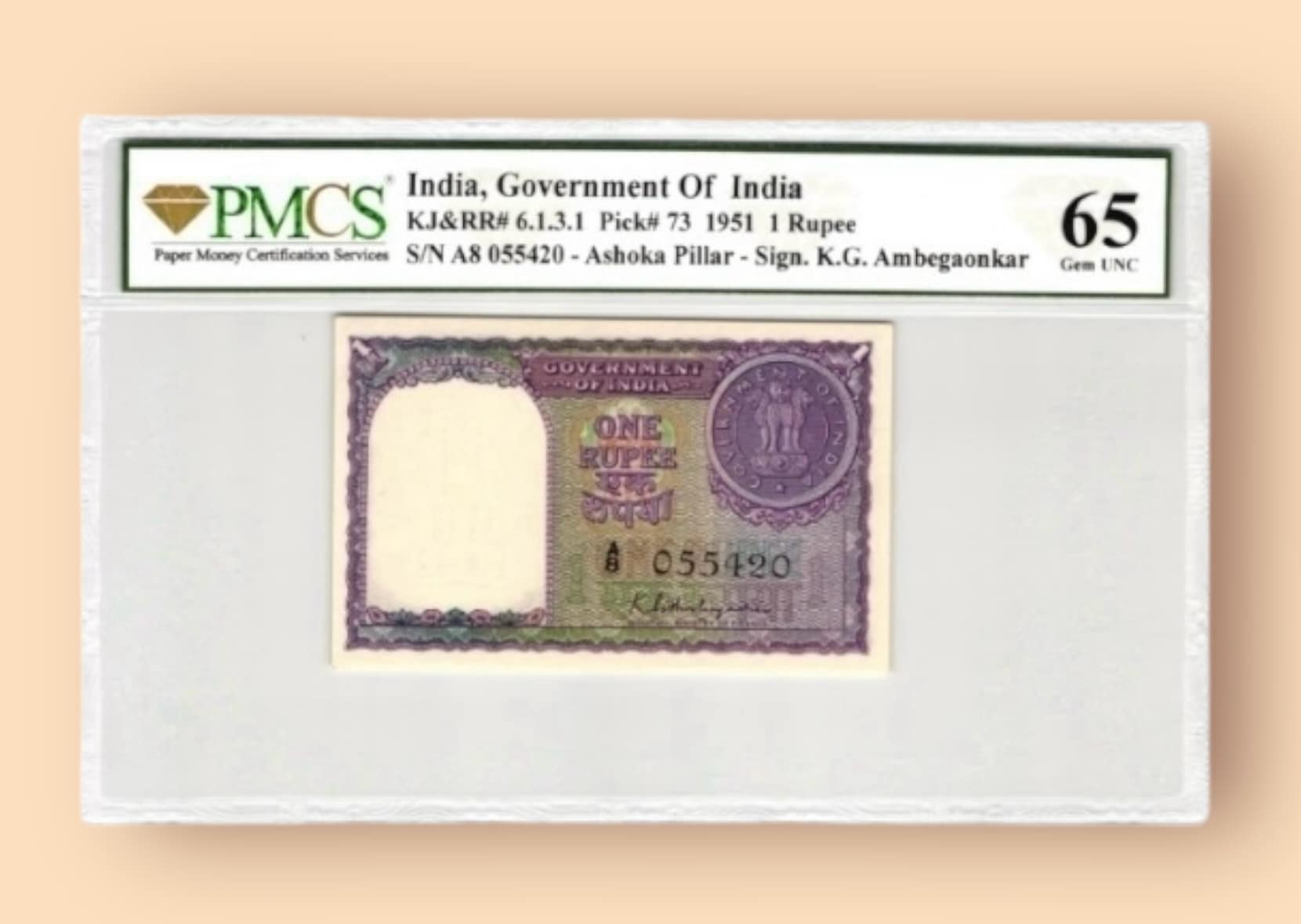Re 1 REPUBLIC INDIA BANKNOTE GRADED 65 signed by K G Ambegaonkar GEM AUNC Very Unique and Rare