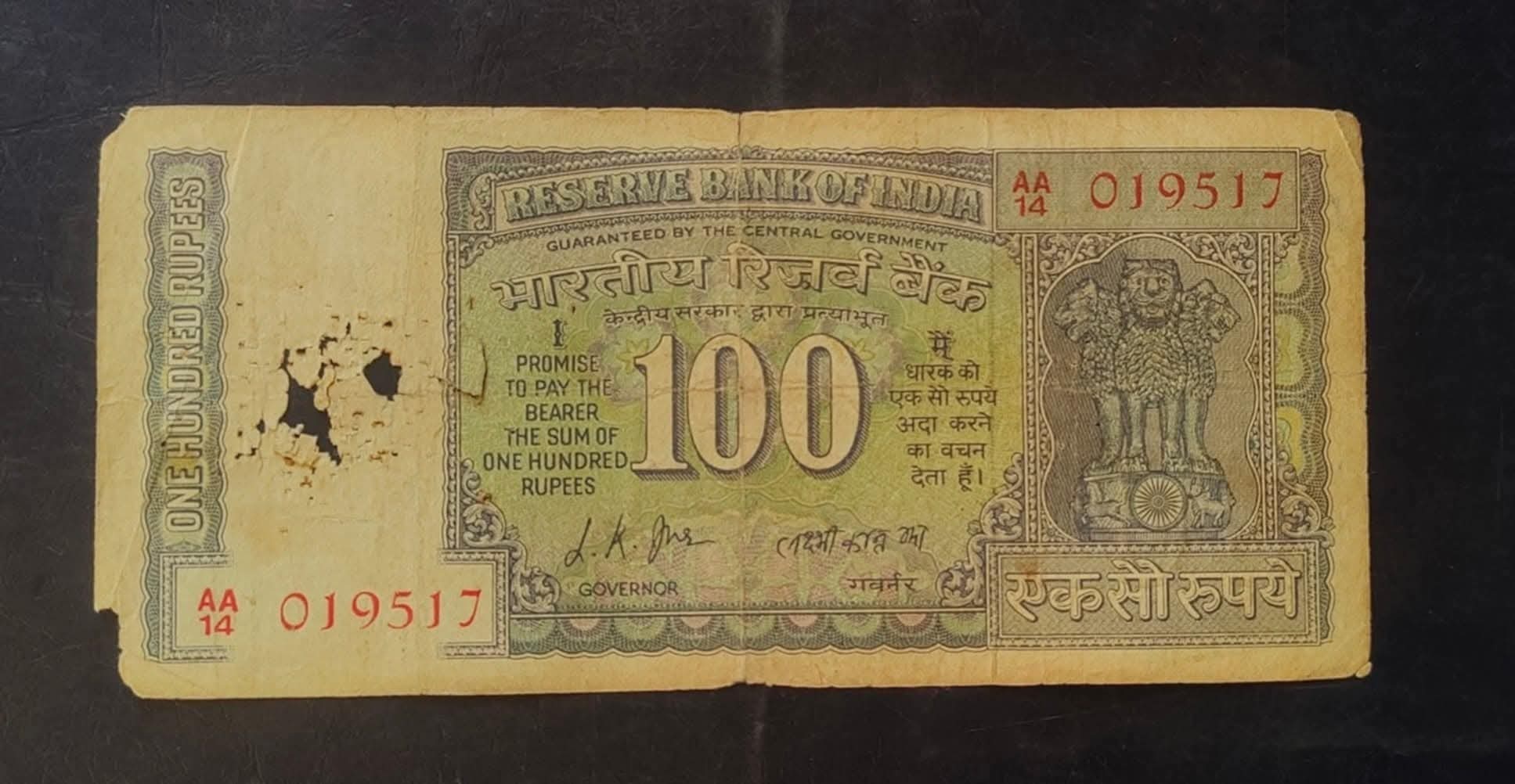 Reserve Bank of India 🏛️🏛️ 100 rs. note 💸💵💸 Signature of Lk.jha Mahatma Gandhi Back side condition as imege Same and similar piece available