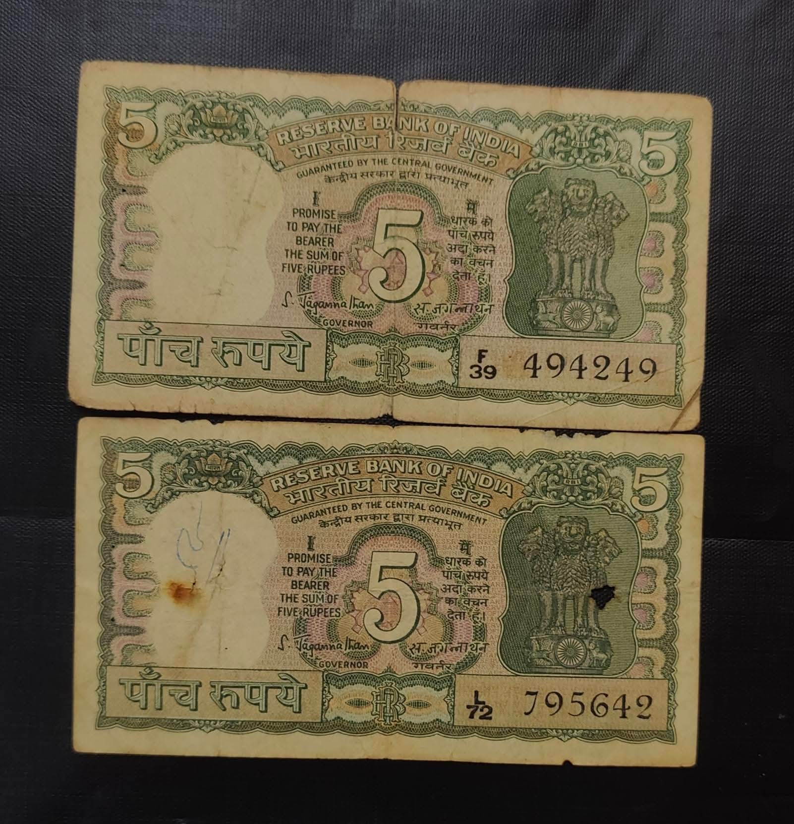 Reserve Bank of India 5 rupees note 4 Deer Signature of S. Jagannath Condition as image 2 note given Same and similar piece available