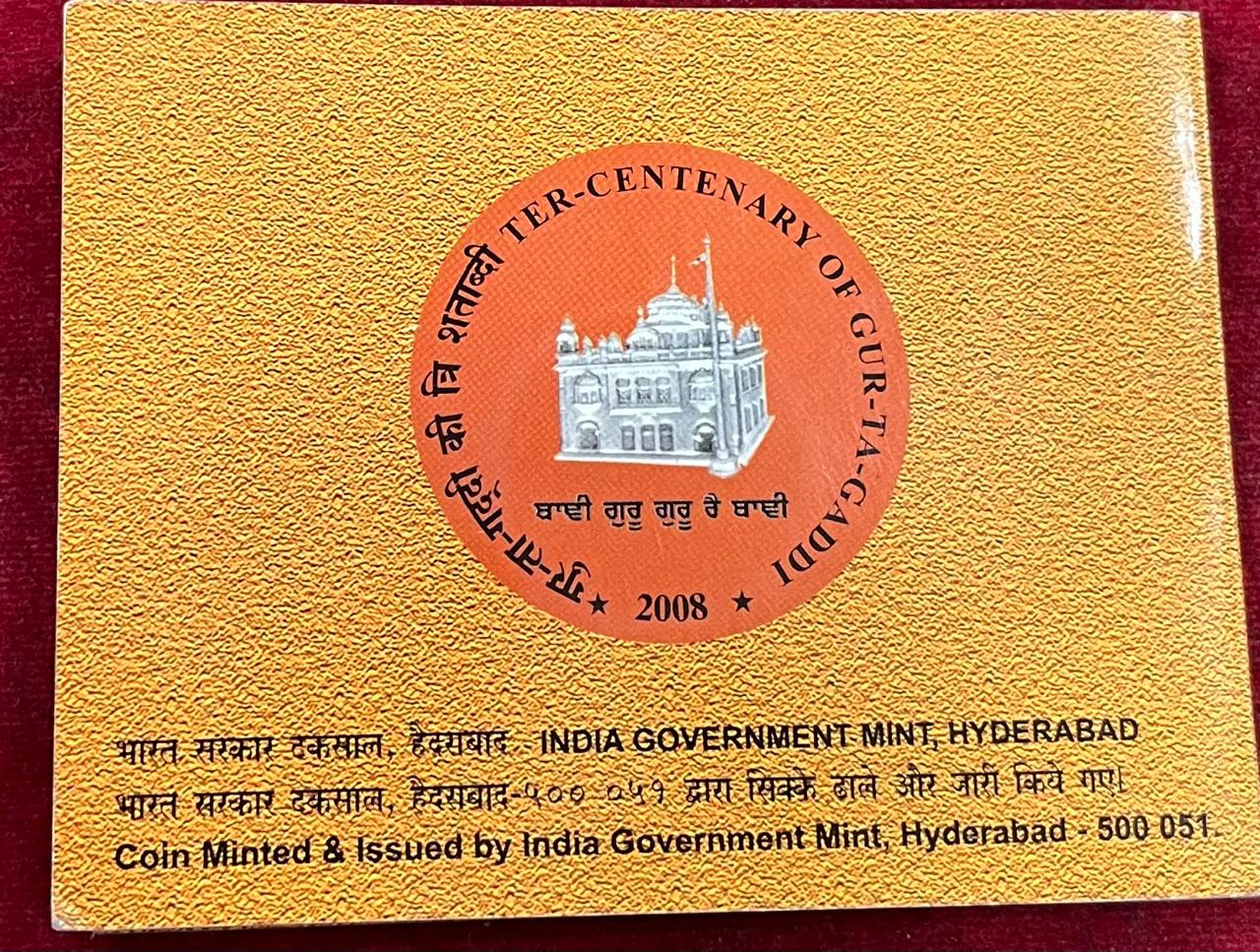 Rs 10 UNC SET OF TER CENTENARY OF GUR TAGADDI OF SHIR GURU GRANTH SAHIB RARE (WITH OUT COVER SET )