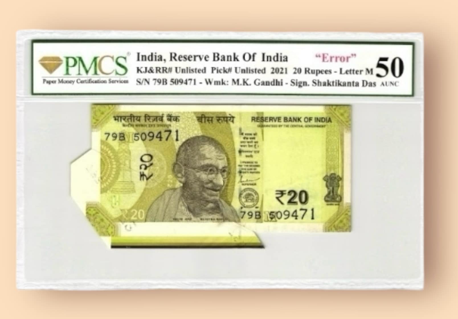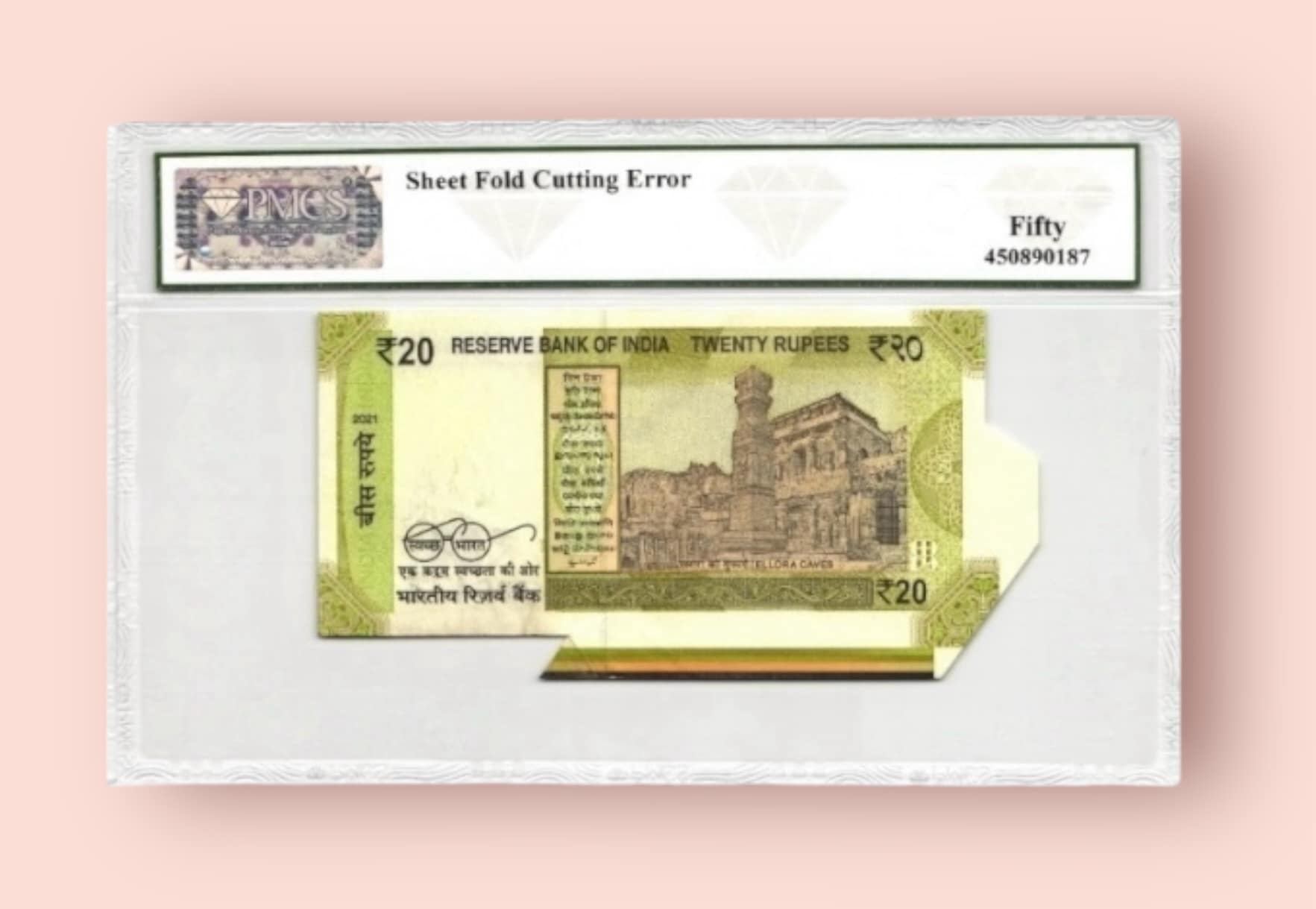 Rs 20 REPUBLIC INDIA BANKNOTE GRADED 50 SHEET FOLD CUTTING ERROR Signed by Shaktikanta das Inset M AUNC Unique and Rare