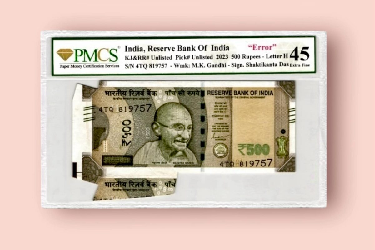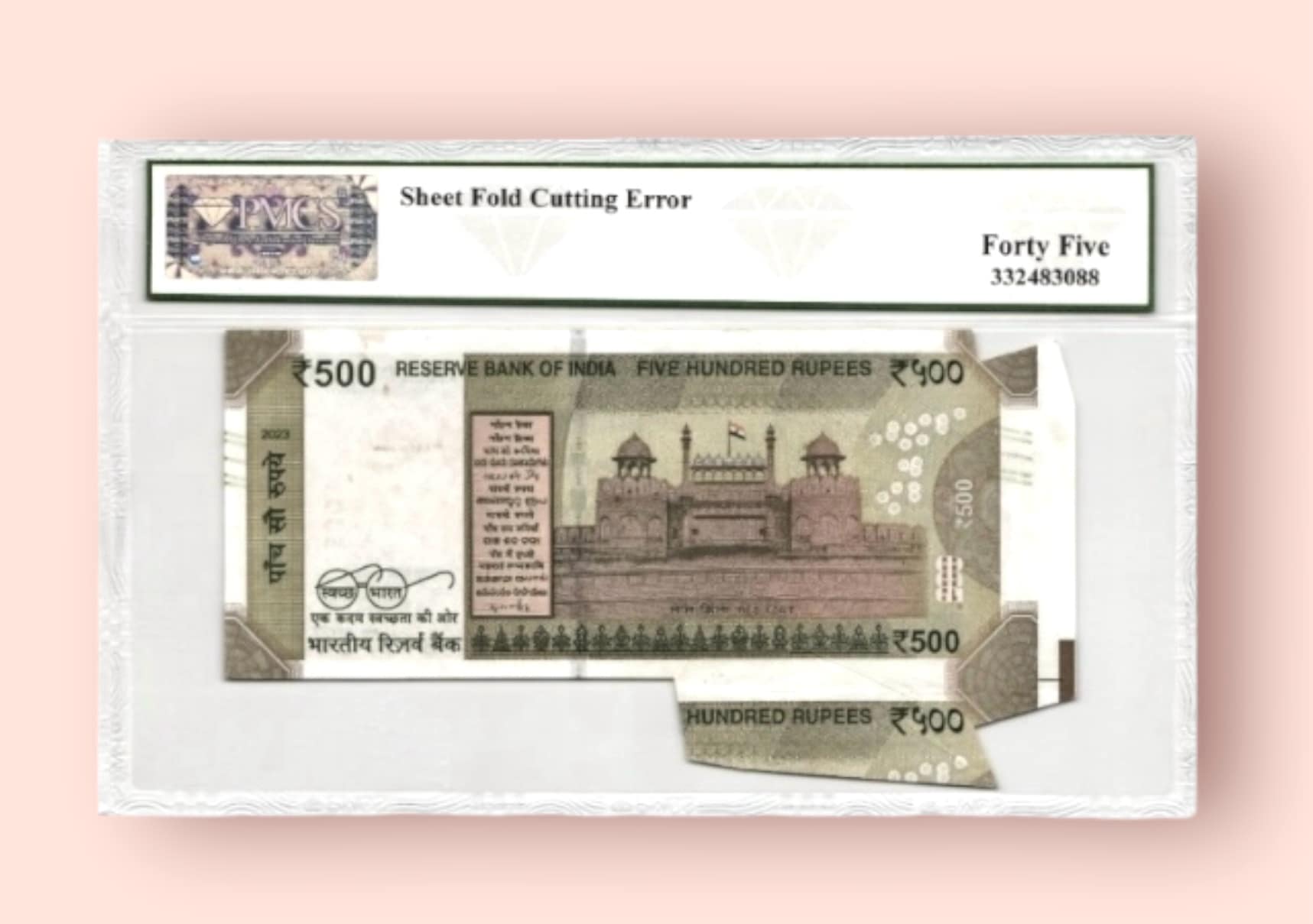 ✅ Rare Rs 500 banknote with sheet fold cutting error