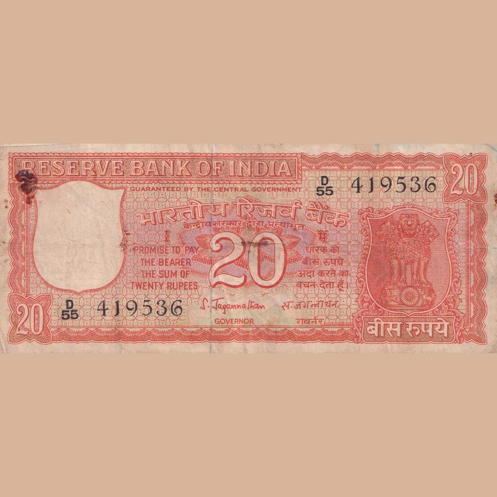 S . Jagannath First Ishu 20 Rupees Parliment Ishu Rare Note