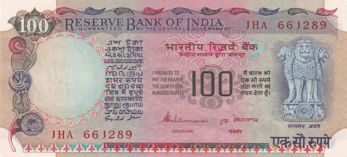 S.Vanketraman ( plain Insert) Old series 100 rupees note Gem 💎 UNC note