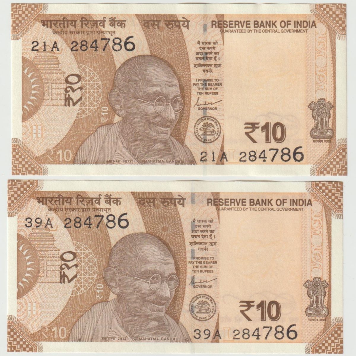 ✨ Rare UNC 10 Rupee banknotes with same serial number and fancy number