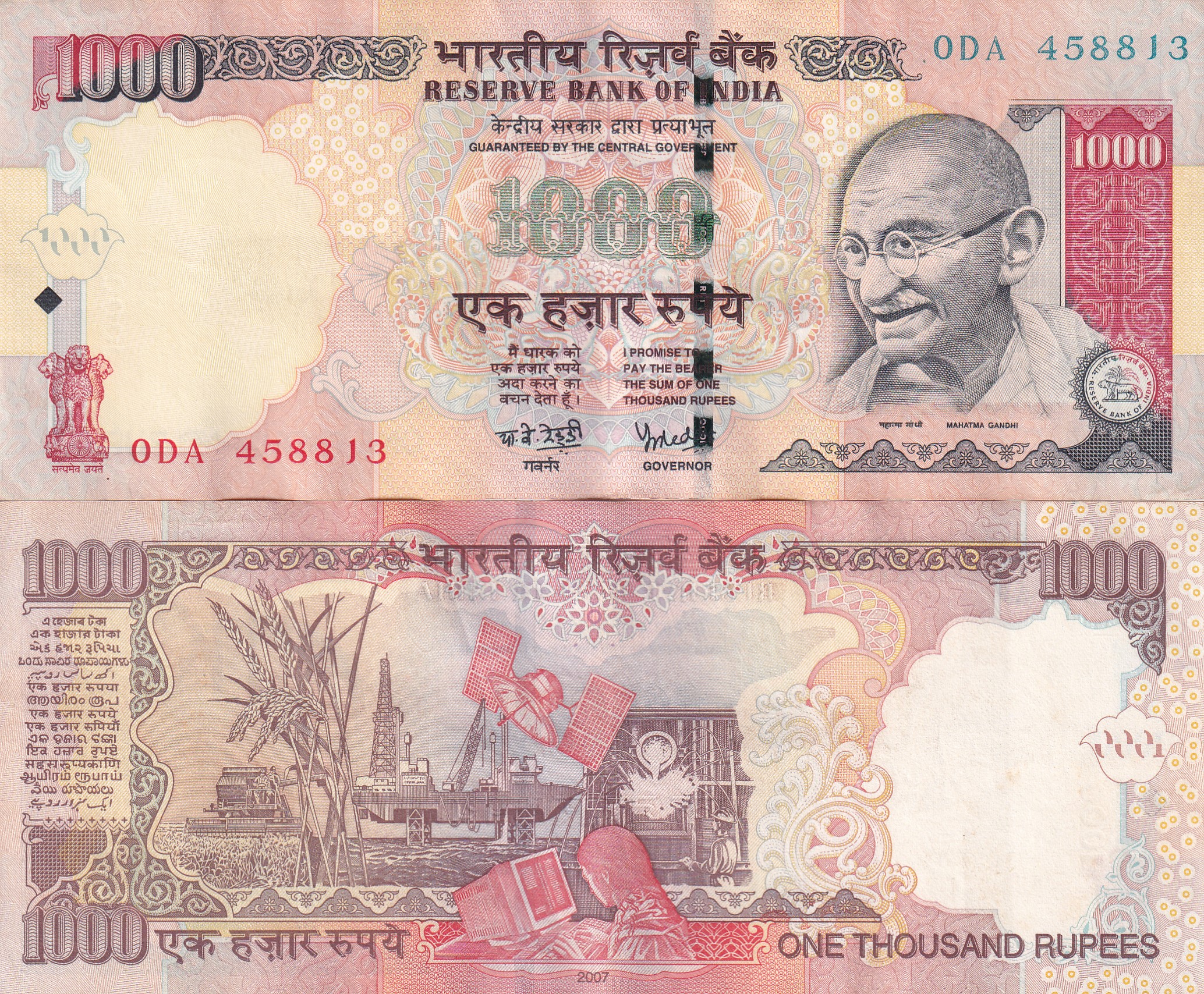 Y.B.Reddy (PLAIN INSERT 2007) 1000 Rupees Top condition Note without Pen Mark ; * *BUYER WILL RECEIVE DIFFERENT SERIAL NUMBER 1 NOTE* *