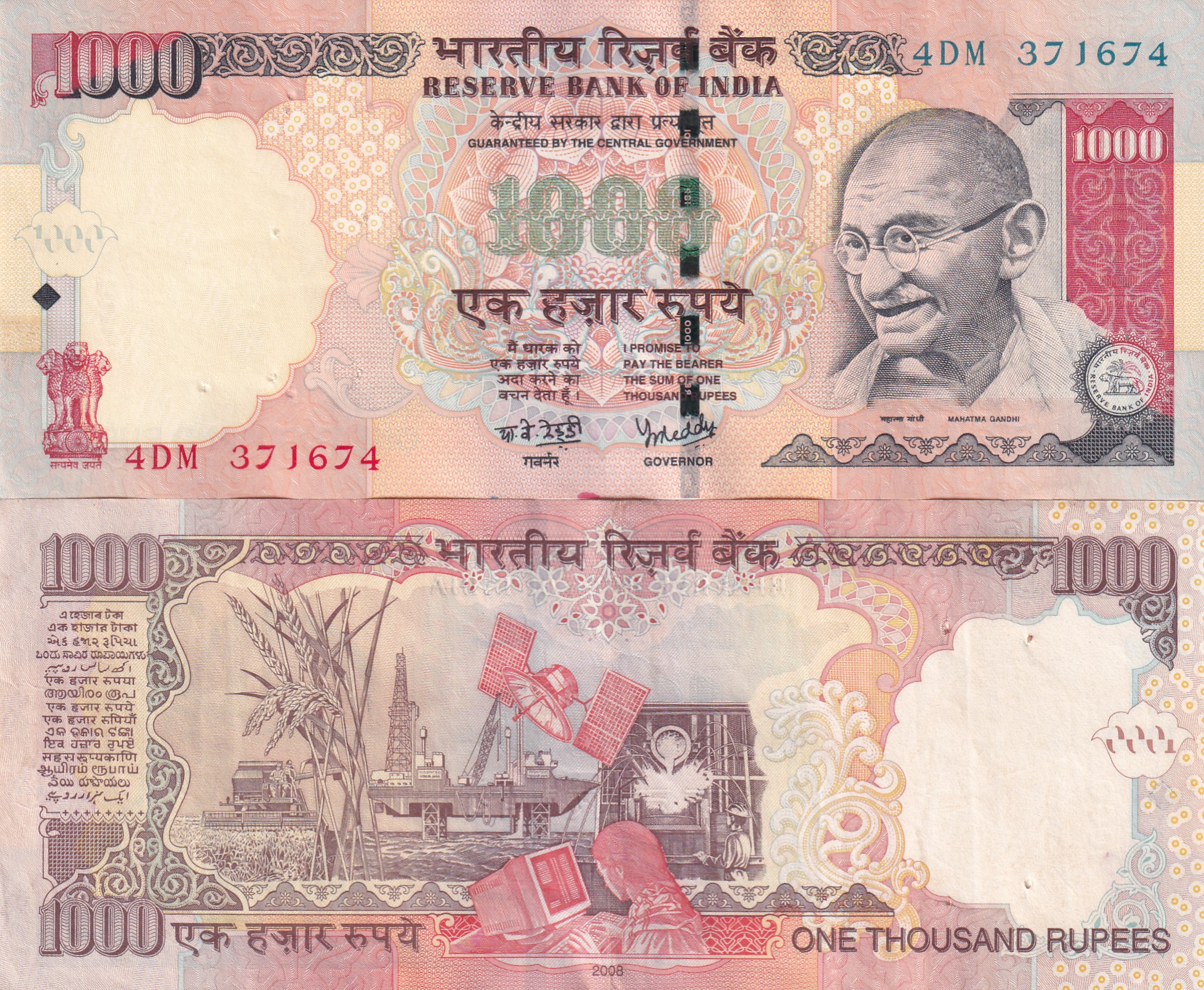 Y.B.Reddy (PLAIN INSERT 2008) 1000 Rupees Top condition Note without Pen Mark ; * *BUYER WILL RECEIVE DIFFERENT SERIAL NUMBER 1 NOTE* *
