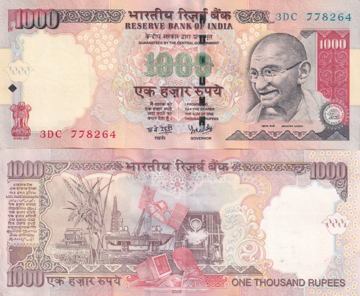 Y.B.Reddy (Plane Insert 2008) 1000 Rupees Top condition Note without Pen Mark