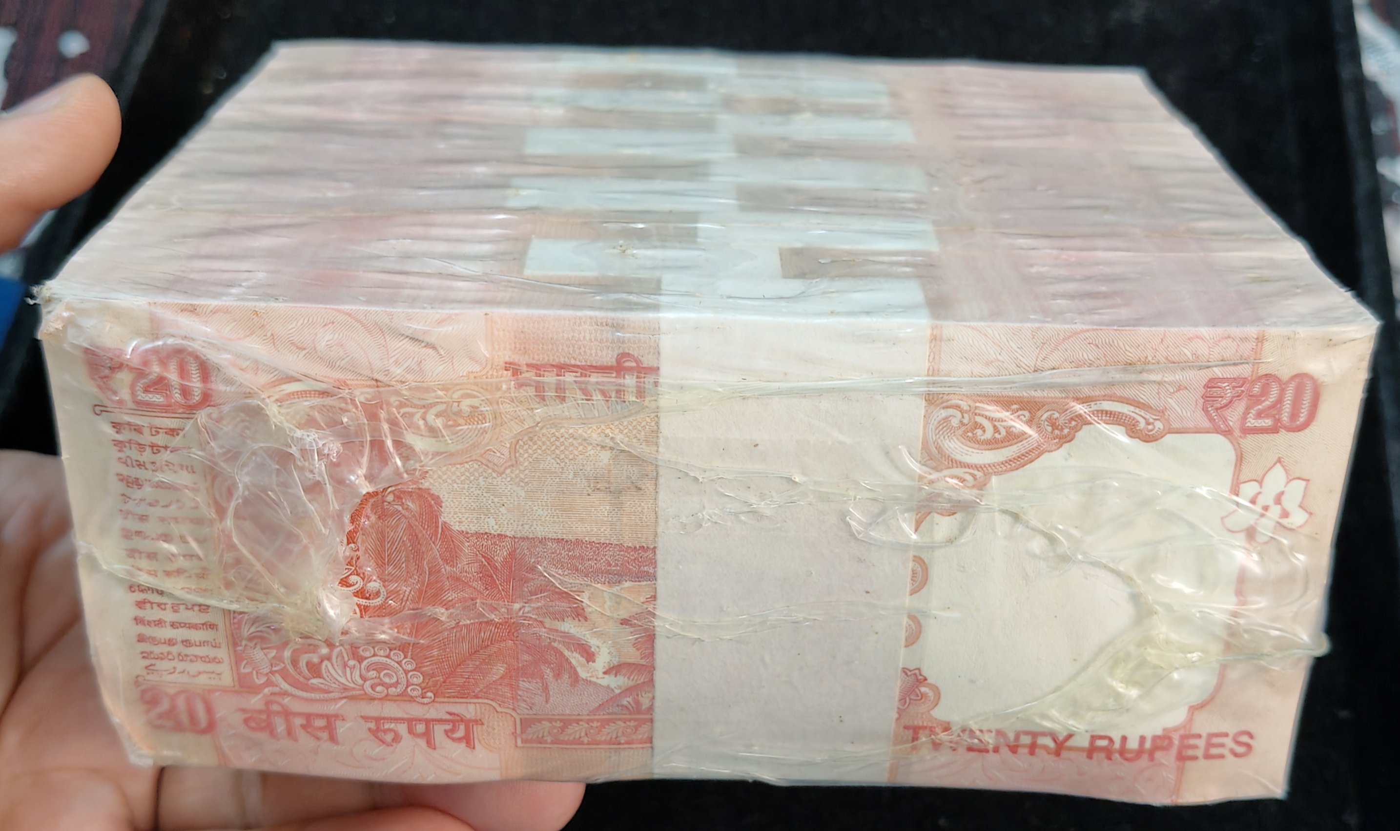 20 Ruppes Old Ishu Urjit patel seeled pack Rim with fancy last note number 214000 pack Rim 1000 note