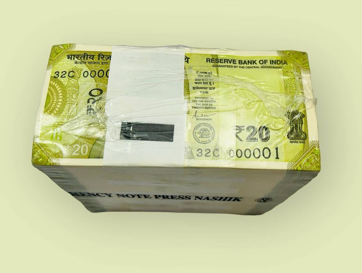 Rs 20/- 000001 TO 001000 India Banknote Gem Unc Serial Brick Extremely Unique and Rare 2023 Inset “N” Issue