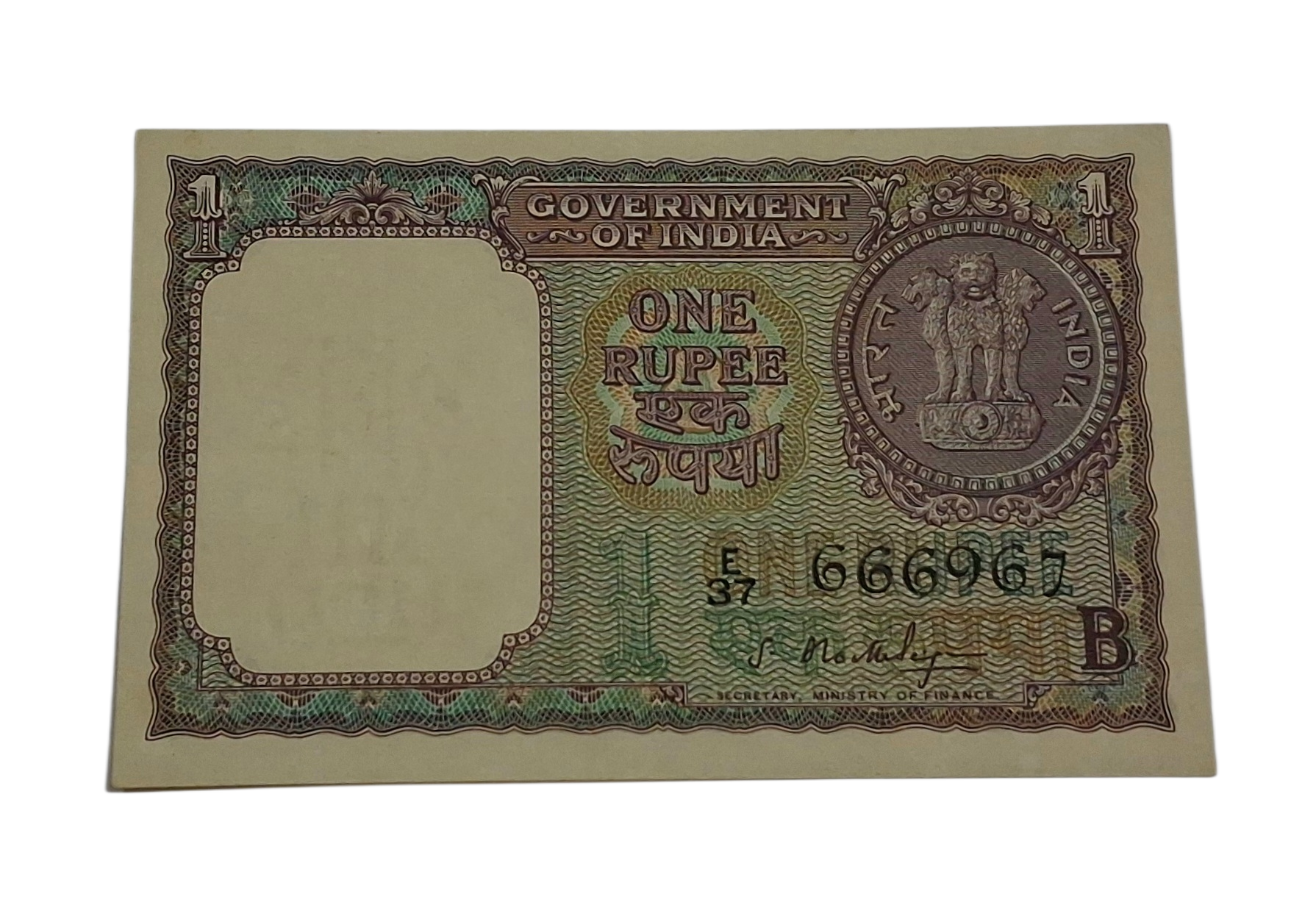 One Rupee Old BIG COIN Issue Year 1965 Sign S. BHOOTHLINGAM with SEMI-FANCY Serial Number **SCARE** High Collectable AUNC Grade.