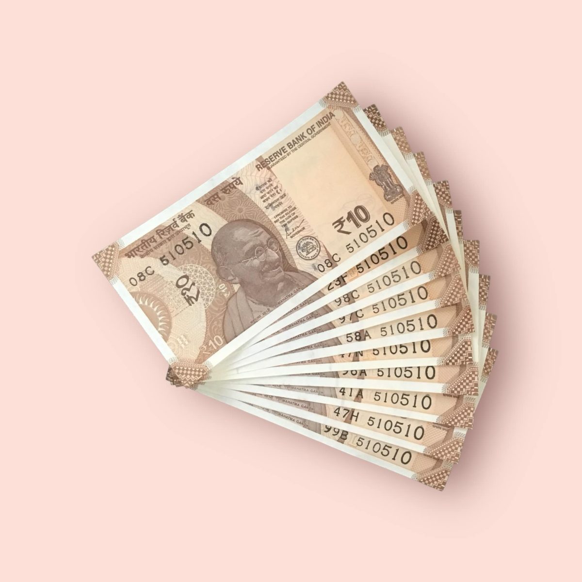 RS 10/- INDIA BANK NOTE SEMI FANCY 10 NOTE SAME NUMBER SET 510510 UNIQUE AND RARE