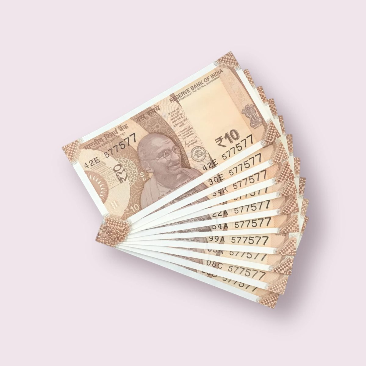 R 10 India Banknote Semi Fancy 10 Note Set Number 577577 Gem Unc Unique and Rare