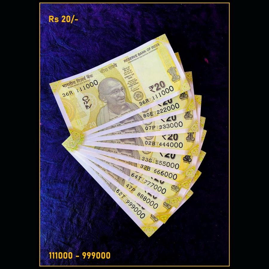 Rs 20 INDIA BANKNOTE SET 111000 – 999000 GEM UNC UNIQUE 9 Note set