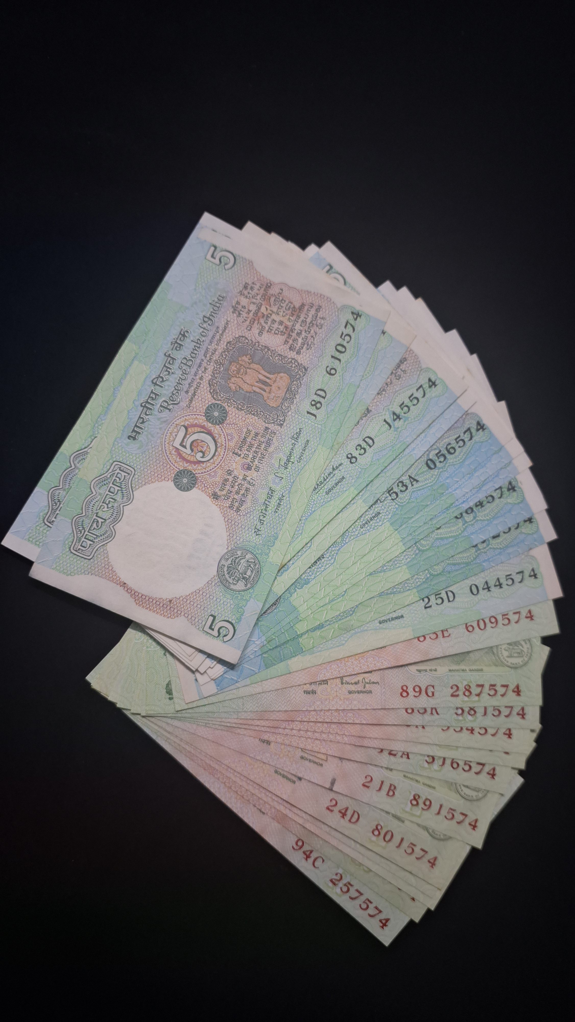 5 RUPEE SIGNATURE SET GEM UNC CONDITION RARE TO FIND ALL NOTE ENDING SAME LAST THREE DIGIT 574