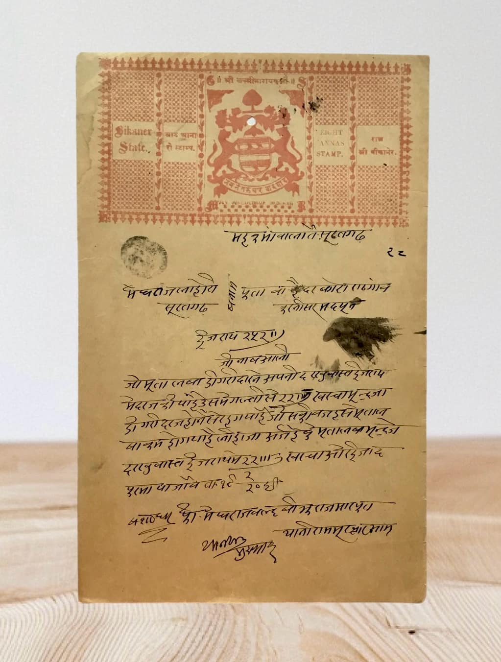 India Government Bikaner 8 Anna Stamp Paper Rajasthan Vintage Issue Very UNIQUE And Rare