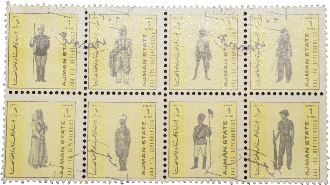 Airmail Stamp of UAE – Ajman State with Military Unifrms 1 Riyal – Block Set of 8 Different – Condition as per Image.