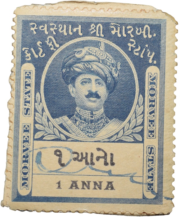 Court Fee Stamp of Morvee State Blue Colour 1 Anna – Used Condition as per Image.
