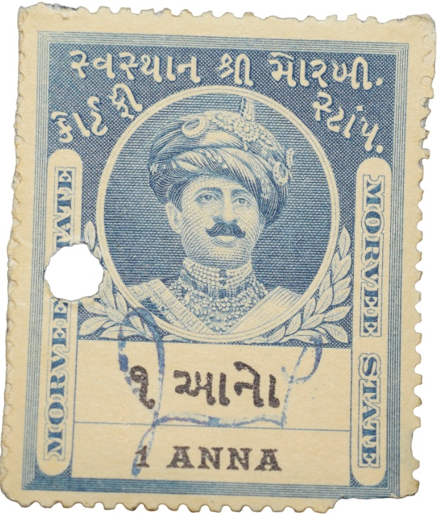 Court Fee Stamp of Morvee State Blue Colour 1 Anna – Used Condition as per Image.