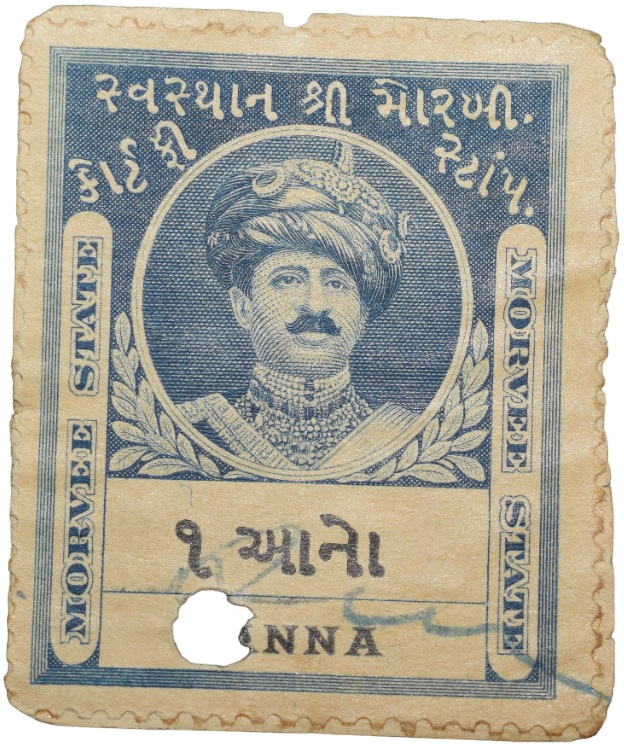 Court Fee Stamp of Morvee State Blue Colour 1 Anna – Used Condition as per Image.