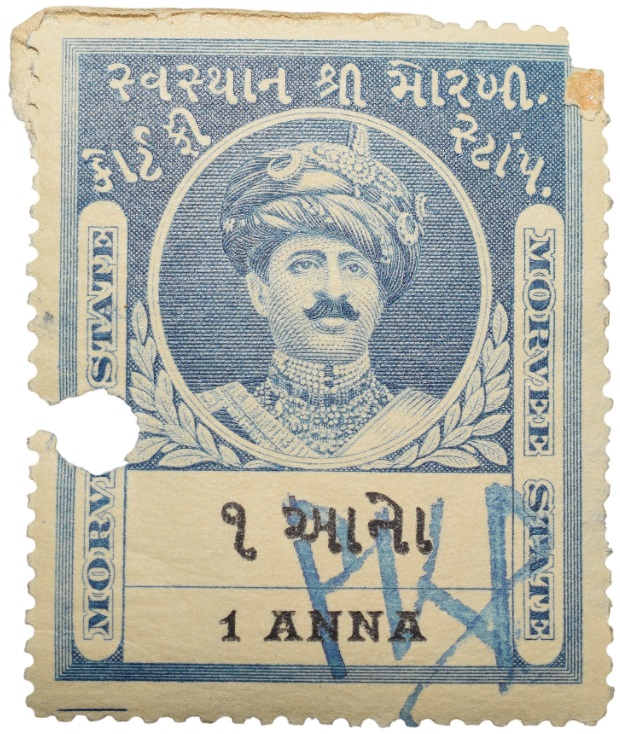 Court Fee Stamp of Morvee State Blue Colour 1 Anna – Used Condition as per Image.
