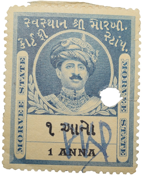 Court Fee Stamp of Morvee State Blue Colour 1 Anna – Used Condition as per Image.