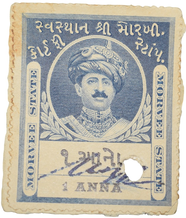 Court Fee Stamp of Morvee State Blue Colour 1 Anna – Used Condition as per Image.