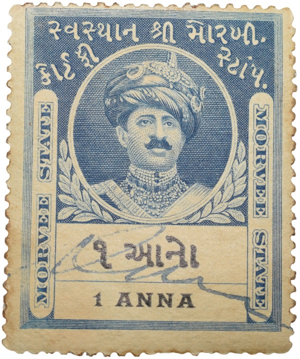 Court Fee Stamp of Morvee State Blue Colour 1 Anna – Used Condition as per Image.