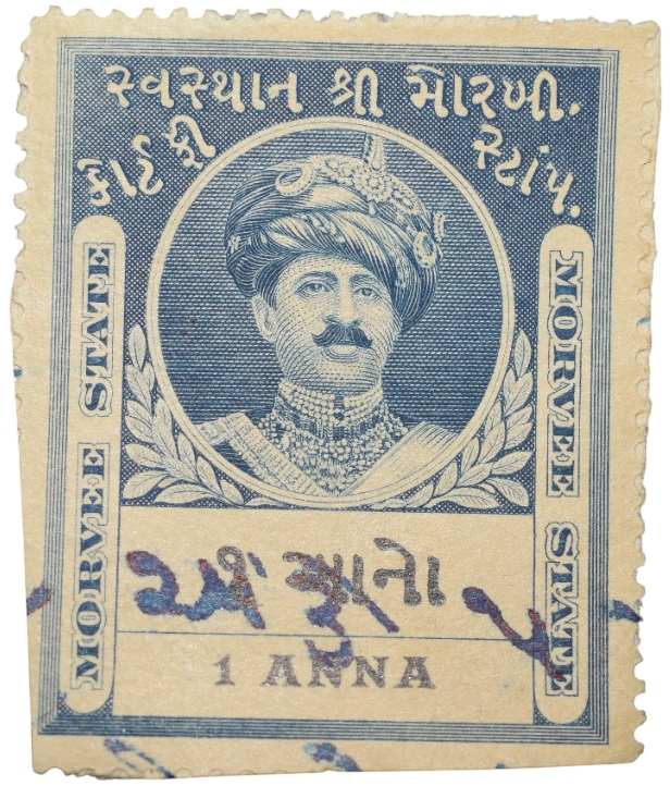 Court Fee Stamp of Morvee State Blue Colour 1 Anna – Used Condition as per Image.