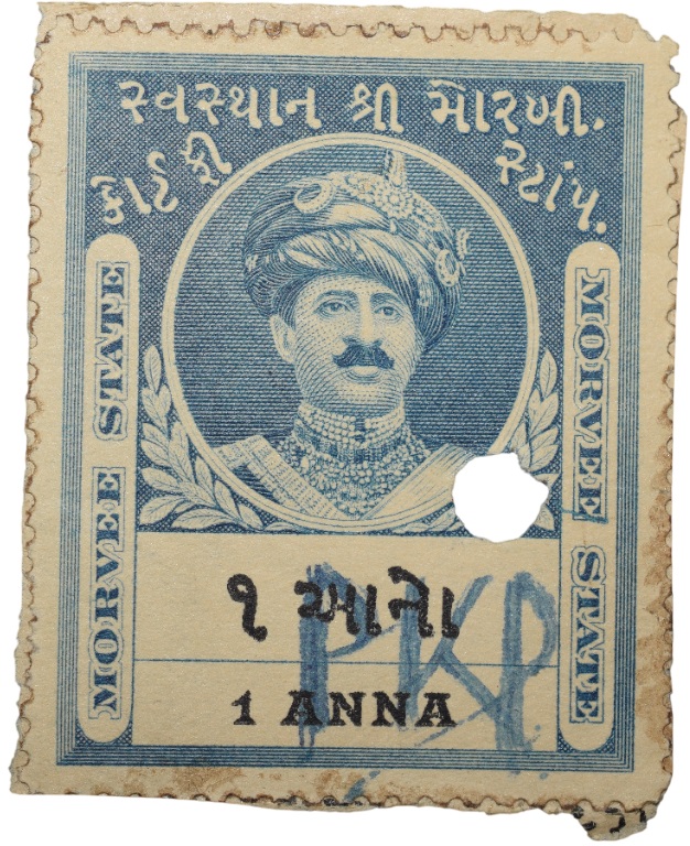 Court Fee Stamp of Morvee State Blue Colour 1 Anna – Used Condition as per Image.