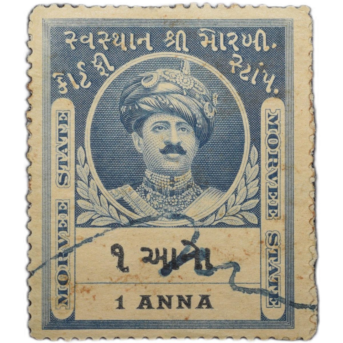Court Fee Stamp of Morvee State Blue Colour 1 Anna – Used Condition as per Image.