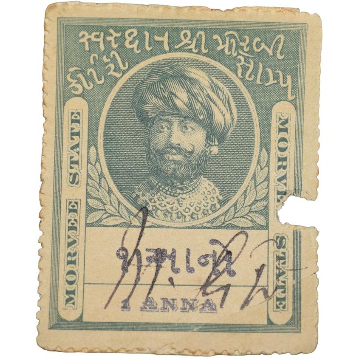 Court Fee Stamp of Morvee State Green Colour 1 Anna – Used Condition as per Image.