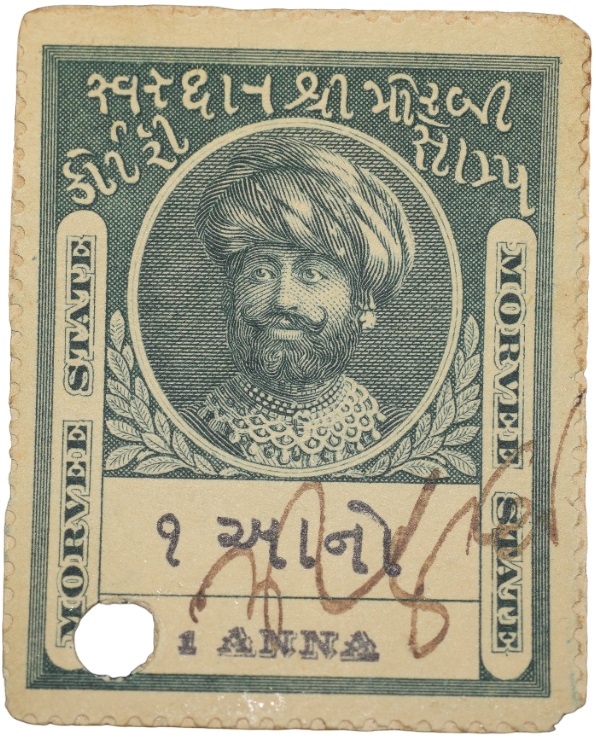 Court Fee Stamp of Morvee State Green Colour 1 Anna – Used Condition as per Image.