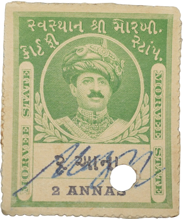 Court Fee Stamp of Morvee State Green Colour 2 Annas – Used Condition as per Image.