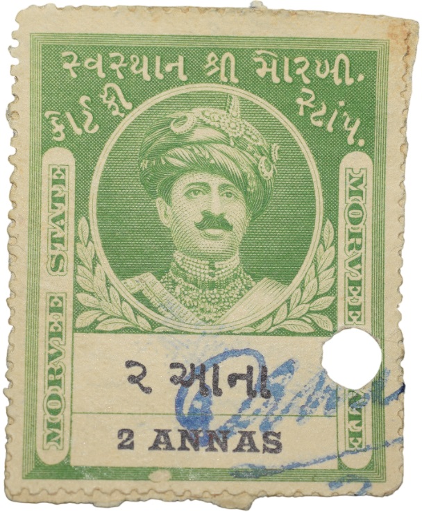 Court Fee Stamp of Morvee State Green Colour 2 Annas – Used Condition as per Image.
