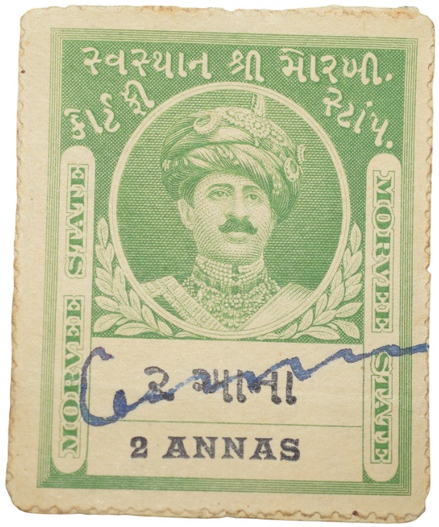 Court Fee Stamp of Morvee State Green Colour 2 Annas – Used Condition as per Image.