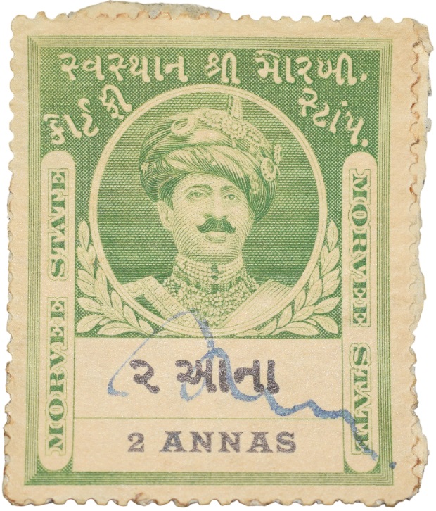 Court Fee Stamp of Morvee State Green Colour 2 Annas – Used Condition as per Image.
