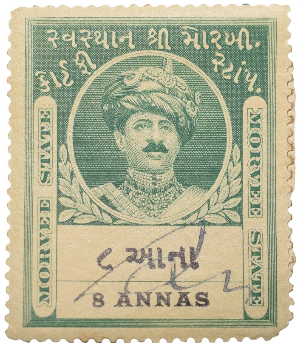 Court Fee Stamp of Morvee State Green Colour 8 Annas – Used Condition as per Image.