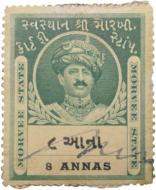 Court Fee Stamp of Morvee State Green Colour 8 Annas – Used Condition as per Image.