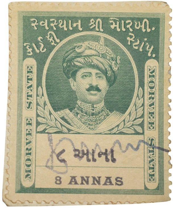 Court Fee Stamp of Morvee State Green Colour 8 Annas – Used Condition as per Image.