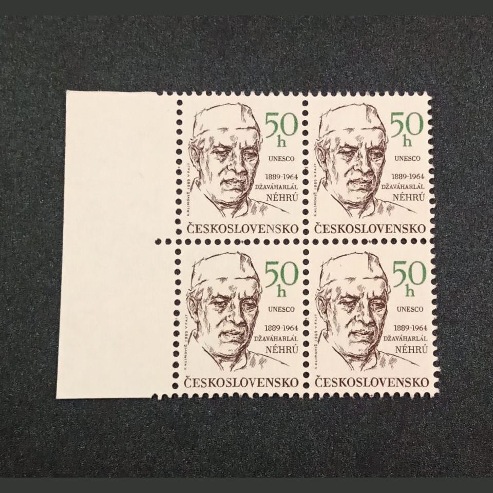 CZECHO SLOVAKIA BLOCK OF 4 STAMPS On NEHRU in Mint Condition.