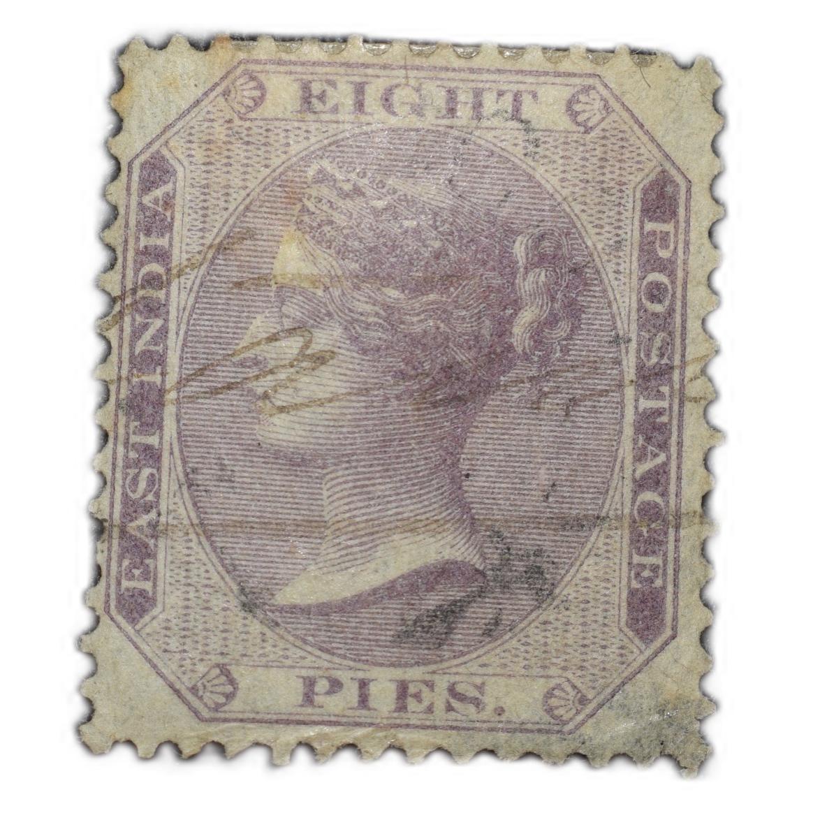 East India Postage Stamp of Victoria Queen (AD 1860) – Purple-White Colour 8 Pies – Gibbson Ty.52 –