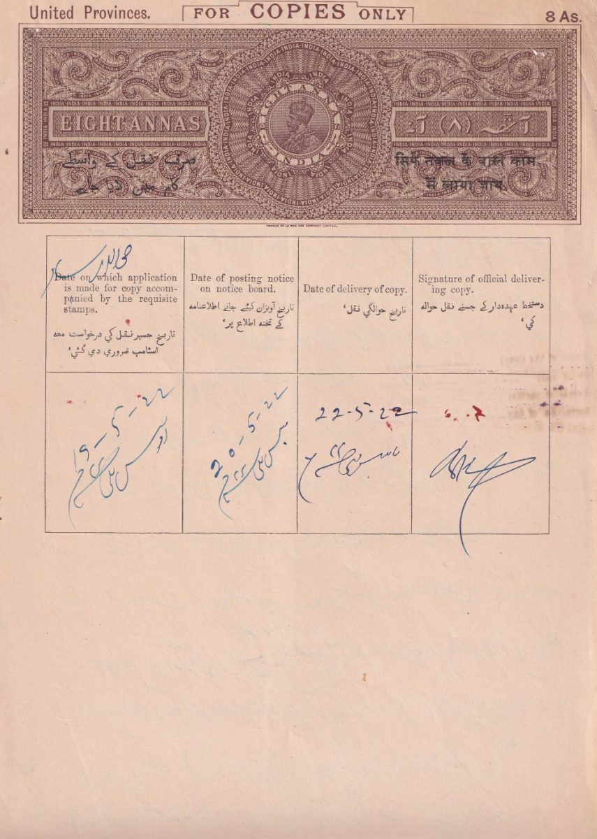 George Fifth Eight Annas Stemp Paper Old Lowest Price