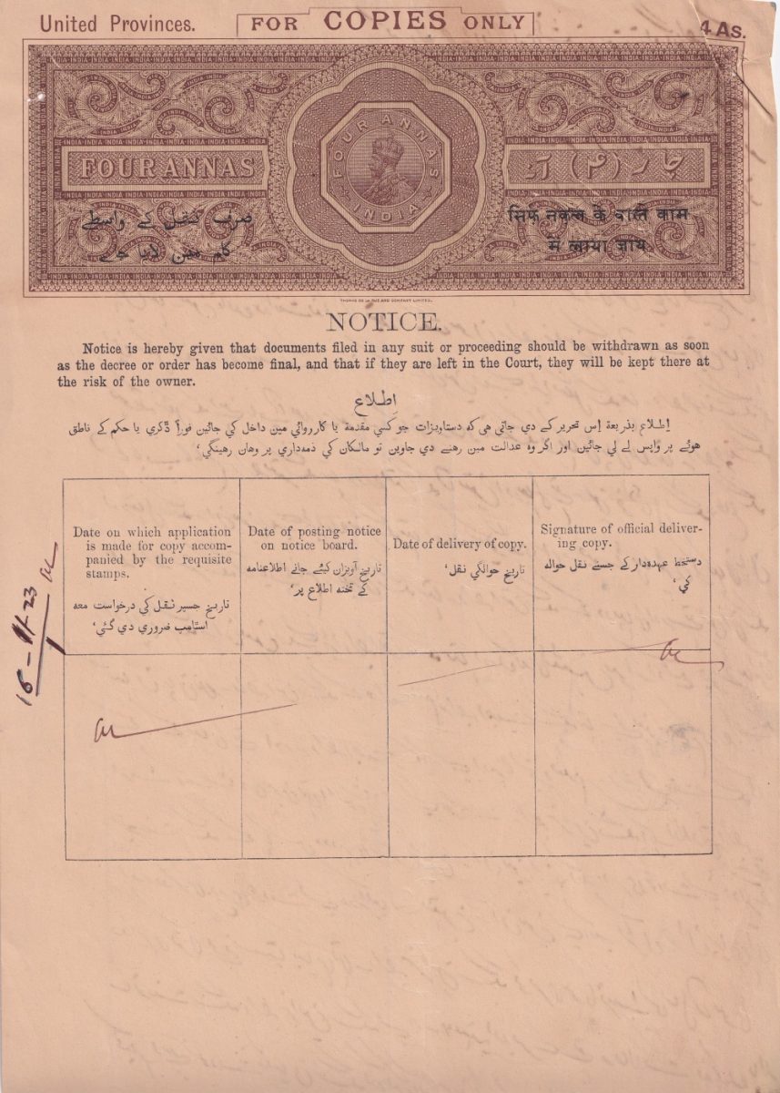 🌟 Rare George Fifth Four Annas Stamp Paper