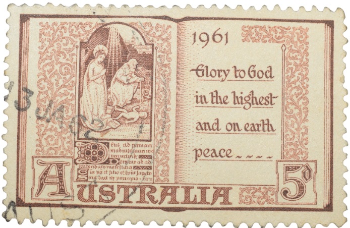 Old Postal Stamp of Australia (AD 1961) – 5 Pence Brown Colour – ‘Glory to God’ – Used Condition as per Image.