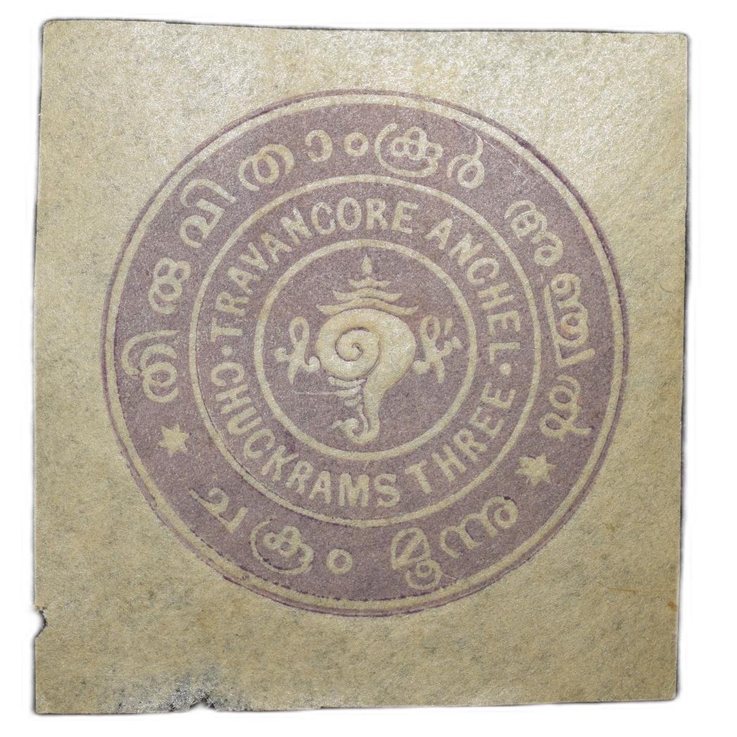 Paper Stamp of Travancore Anchel Chukrams 3 – Un-Used Condition as per Image.